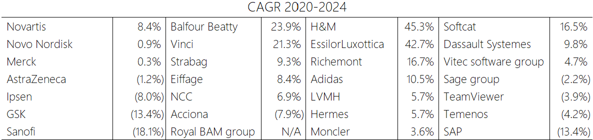 I also mentioned that the screener baseline of five-year (2020-2024) performance will disqualify companies that have a track record shorter than five years and that the baseline year can be negatively impacted by external events; our current baseline year of 2020 is a great example of this. If we adjusted for all eventualities, we would be creating a scenario that is only possible to explain with a lot of ifs, buts and what nots.